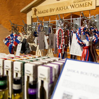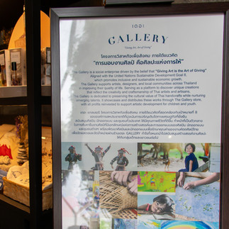 The Gallery, Art of Giving, Giving Art Community Project Hatch Dome โดย Asset World Corporation เพื่อเป็นสะพานระหว่าง “ช่างฝีมือ–ศิลปิน–ผู้ซื้อ” ทุกชิ้นงานที่วางขายจึงไม่เพียงมีความสวยงามในเชิงศิลป์ แต่ยังมีคุณค่าทางสังคม เพราะรายได้ส่วนหนึ่งกลับไปสู่ชุมชนผู้ผลิตโดยตรง ไม่ว่าจะเป็นงานผ้าเซรามิก กระเป๋า เครื่องเขียน หรือของตกแต่งบ้าน แต่ละชิ้นคือเรื่องเล่าของท้องถิ่นที่ถูกกลั่นออกมาอย่างละเมียด