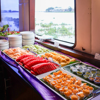 พร้อมบุฟเฟ่ต์อาหารกลางวันทั้งไทยและตะวันตก เสิร์ฟท่ามกลางวิวสองฝั่งแม่น้ำที่เต็มไปด้วยวัดวาอาราม อาคารประวัติศาสตร์ และสถาปัตยกรรมของยุครัตนโกสินทร์ตอนต้น